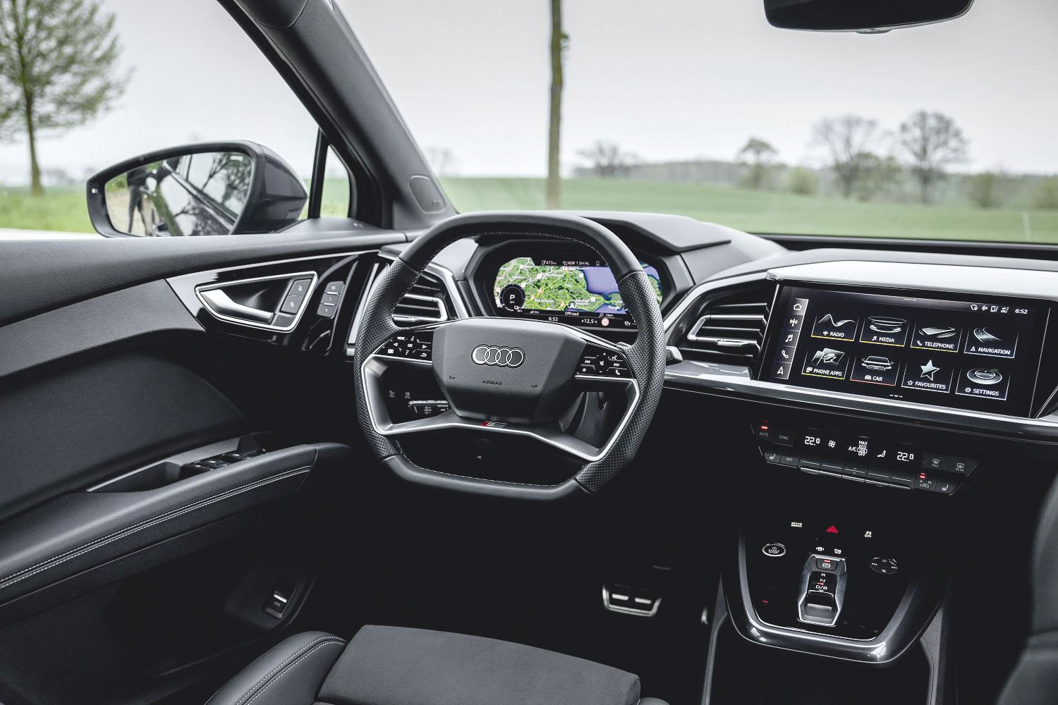 Das Fahrverhalten des Q4 e-tron ist sehr ansprechend. Das Automobil wiegt zwar bereits ohne Insassen und Gepäck mehr als zwei Tonnen, ist aber dennoch wendig wie ein Kleinwagen – das jedoch mit deutlich mehr Fahrspass. Es ist somit sowohl für den Stadtverkehr wie auch für Reisen gut geeignet. Zudem kann dank dem optionalen Audi «drive select» die gewünschte Charakteristik des Fahrzeugs über fünf verschiedene Modi gewählt werden.