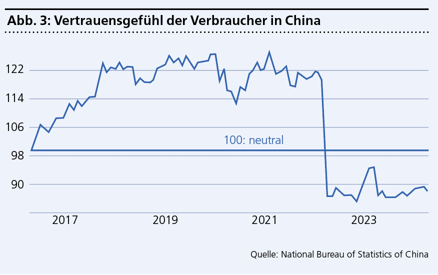 Im August 2020 legten neue Vorschriften fest, wie viel Geld Immobilienentwickler je nach ihrer finanziellen Situation leihen konnten. Dies löste die viel diskutierten Zahlungsausfälle und Insolvenzen vieler chinesischer Immobiliengiganten aus. Obwohl die Wohnungspreise von der lokalen Regierung sorgfältig kontrolliert wurden, um einen Marktcrash und einen starken Rückgang der Immobilienpreise zu vermeiden, sank der Wert der Eigenheime der Bevölkerung stetig. Dies wurde ab dem zweiten Quartal 2023 spürbar und der Rückgang beschleunigte sich 2024.