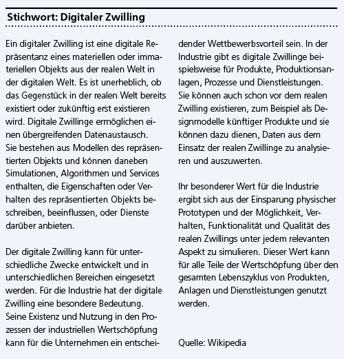 Wenn wir nun aus dem Gesundheitssektor rauszoomen, stellen wir fest, dass das Phänomen «Digitaler Zwilling» in verschiedensten Branchen Anwendung findet. So zum Beispiel auch in der Automobilindustrie: In der Produktionsstrasse für ein fertiges Auto wirken Firmen mit, die zum Teil Kleinstteile liefern müssen. Was ist, wenn schon nur einer davon – wie es zum Beispiel in der Coronapandemie gut sichtbar war – nicht mehr liefern kann? Was, wenn gar mehrere Lieferanten ausfallen? Welche Auswirkungen hat das, und wie weitreichend sind die Konsequenzen? Wie kann man die eigene Produktivität steigern, die Time-to-Market verkürzen, Qualitätsproblemen auf den Grund gehen?