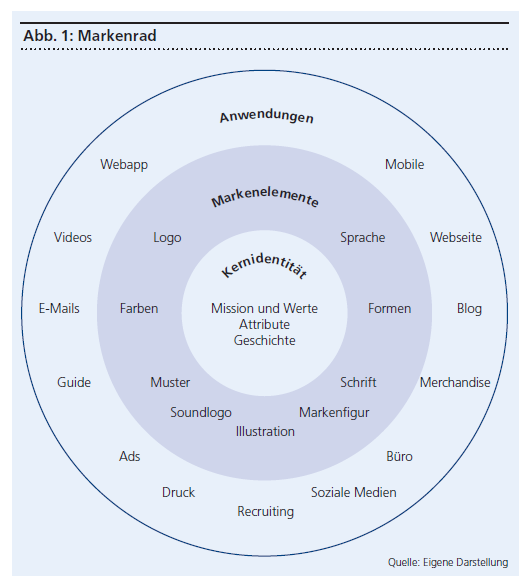 Die drei Kreise des Markenrads sind eine visuelle Abgrenzung der verschiedenen Markenaspekte, wobei diese keinesfalls losgelöst voneinander betrachtet werden sollen.