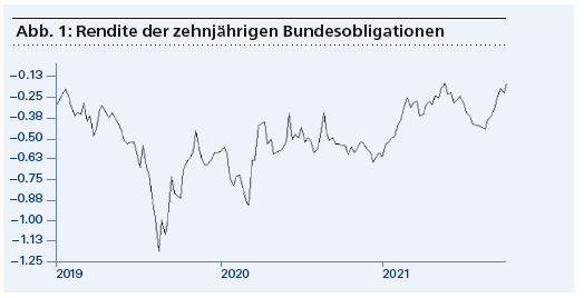 Die Anleihezinsen steigen, auch in der Schweiz, wie die Grafik zeigt. Und das wird dem Aktienmarkt zu schaffen machen. Es fällt nur deshalb nicht so auf, weil die Staatspapiere noch Negativzins melden. Zehnjährige Bundesobligationen «rentieren» momentan bei minus 0,16 Prozent.