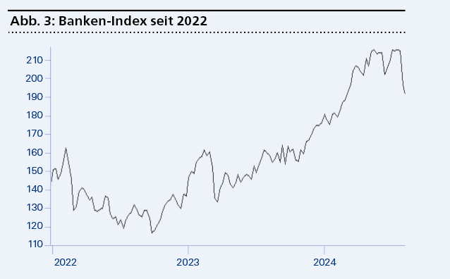 Eine Überraschung war es nicht, dass die Aktienkurse gleich Anfang August deutlich nachgaben. Vor allem die Hightech-Werte in den USA waren weit überbewertet und sind zuletzt nur noch deshalb gestiegen, weil sich die Anleger im Vertrauen auf die «Künstliche Intelligenz» in Sicherheit wogen. Ausserdem hatten ja etliche Zentralbanken, unter anderem auch die schweizerische, mit ersten Zinssenkungen begonnen. Sinkende Inflationsraten in Europa und in den USA machten dies ja auch wieder möglich. Was man aber übersehen hatte und nicht wahrhaben wollte, war dass die weltweite Wirtschaftslage äusserst schwach blieb. Vor allem kleinere Unternehmen und mittelständische Firmen überraschten mit Gewinnwarnungen. Auch Insolvenzen häuften sich. Daher hätten die Zentralbanken schon längst stärker gegensteuern müssen.