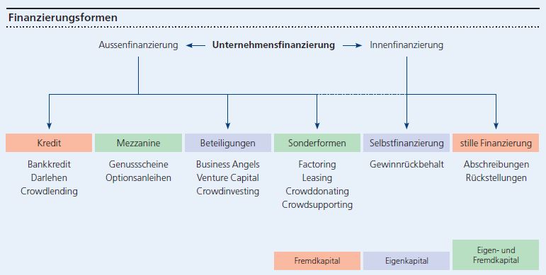 Grundsätzlich wird heute noch klassisch zwischen Innenfinanzierung und Aussenfinanzierung unterschieden. Was von innen an Kapitalien kommt, besteht mehrheitlich aus Gewinnrückbehalten oder einer Finanzierung über Abschreibungen oder Rückstellungen.