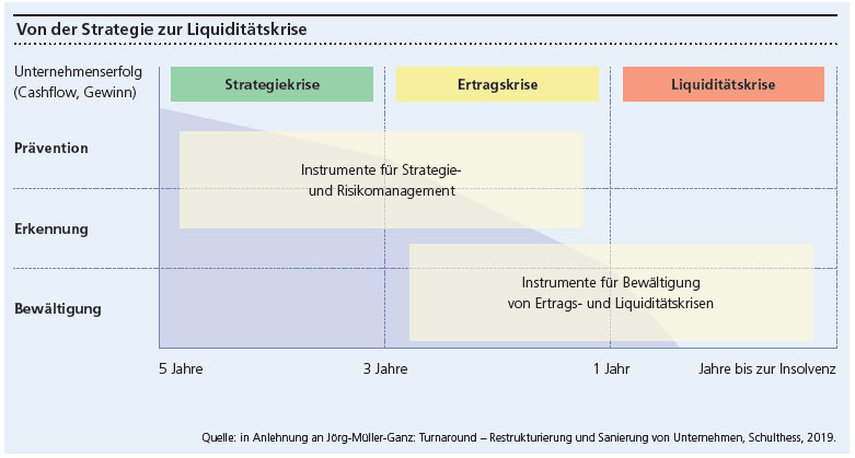 Hat ein Unternehmen noch rechtzeitig die kritische Situation erkannt und ergreift Massnahmen, um den Weg in Nachlass oder Konkurs zu verhindern, spricht man von einem Turnaround. Das Turnaround-Management bezeichnet alle Aktivitäten, die eine Wendung der existenzgefährdenden Unternehmensentwicklung und eine nachhaltige Profitabilität des Unternehmens zum Ziel haben. Es umfasst neben finanzwirtschaftlichen auch ertragswirtschaftliche, strategische, organisatorische und führungsbezogene Massnahmen der Krisenbewältigung.