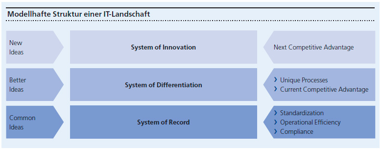 - Diese Risiken intensivieren sich mit der fortschreitenden Digitalisierung aufgrund des Druckes im Markt und der Fülle an neuen technologischen Möglichkeiten und Verheissungen. Grafisch lässt sich dies wie in der Abbildung gezeigt darstellen (Pace-Modell von Gartner).