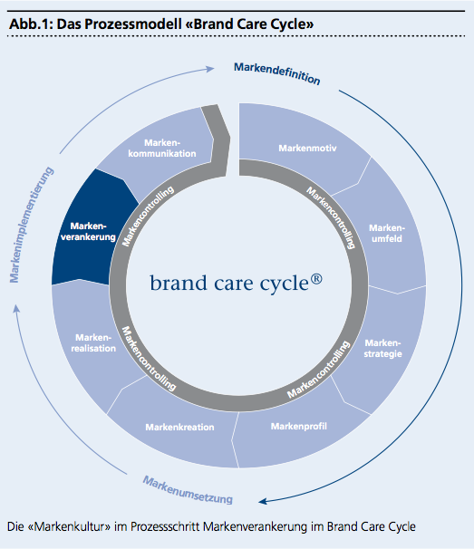 Im Brand Care Cycle, der vom Autor Pascal D. Staub, der Agentur m.a.d. brand care und weiteren Experten entwickelten Methodik für holistische Markenentwicklung und -führung, steht die Erarbeitung des Markenprofils am Ende der Phase «Markendefinition» (siehe Abbildung 1).