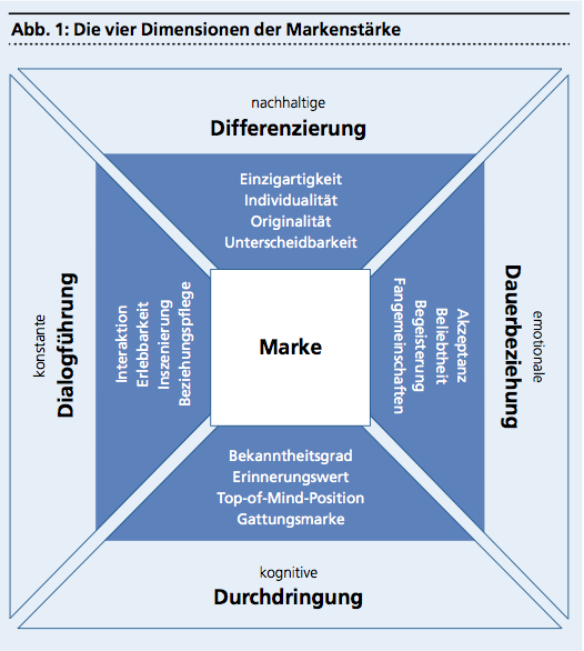 Im Launchartikel zu dieser Serie (KMU-Magazin Nr. 01 /02 2013) haben wir aufgezeigt, wie Markenstärke über vier Dimensionen erzielt wird (Abb. 1). Der Weg zur erfolgreichen und wirkungsstarken Markeninszenierung führt zwingend über die Berücksichtigung dieser Aspekte. Grundvoraussetzung ist jedoch die ehrliche und vertiefte Auseinandersetzung mit dem Kunden, mit dem Markt.Nur wenn ich Bedürfnisse, Motive, Erwartungen, Defizite, aber auch Ängste oder ablehnende Haltungen meiner Konsumenten kenne, kann ich wissen, wie diese das Markenerlebnis empfinden.