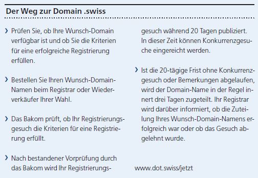 Baumanns Einschätzung wird auch von ausländischen Tendenzen gestützt. Je länger je mehr setzen grosse Metropolen in ihrer Positionierung auf Domains mit lokalgeografischer Endung. Beispiele sind London, Paris, New York (NY), Berlin, Köln (Koeln und Cologne), Elsass (Alsace), Korsika oder Yokohama. Der Trend ist klar: Wichtige Destinationen sind im Internet mit ihren eigenen Endungen präsent und verstärken ihren Markenauftritt. Daran orientiert sich auch der Schweizer Bund. In einer «obligatorischen Empfehlung» hat er .swiss zu einer offiziellen Domain erklärt. So kommt man unter www.gov.swiss beispielsweise direkt auf die Seite des Bundesrates. Unter easygov.swiss erreicht man die Plattform, die Unternehmen eine schnelle Abwicklung der Behördengänge ermöglicht.
