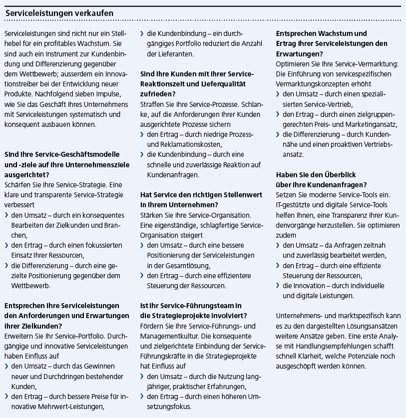 Ein offensives Servicekonzept bietet zahlreiche strategische Möglichkeiten beziehungsweise Hebel, um den Vertriebs- und Markterfolg eines Unternehmens zu steigern. Die wichtigsten seien hier genannt: