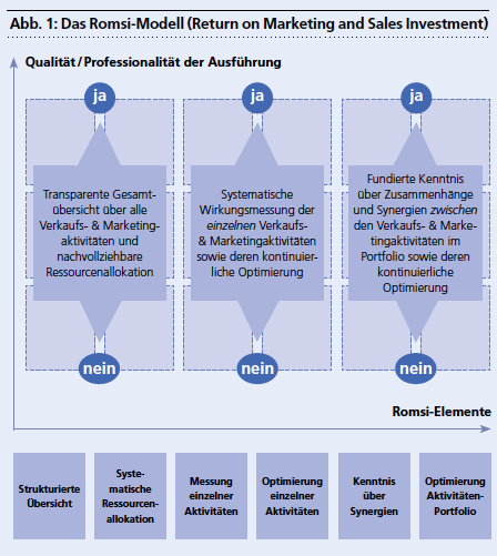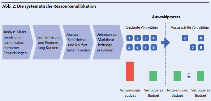 Als logische Konsequenz tritt die erhoffte Wirkung auf Umsatz und Wachstum nicht im erwarteten Ausmass ein beziehungsweise man weiss nicht, welche Massnahme sich nun gelohnt hat, und welche man sich besser gespart hätte. Hinzu kommt, dass in vielen Unternehmen der Verkauf und das Marketing ihre Massnahmenportfolios getrennt voneinander optimieren und somit das Risiko für Fehlentscheidungen zusätzlich erhöht ist.