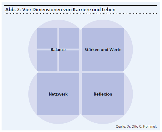 «Wofür möchten Sie in Erinnerung bleiben? Es ist eine Frage, die Sie dazu veranlasst, sich selbst zu erneuern, weil sie Sie dazu drängt, sich als eine andere Person zu sehen – die Person, die Sie werden können», postulierte Peter F. Drucker (Managing the Non-profit Organization, 1990). Das Management zur persönlichen Entwicklung von Karriere und Leben ist vielschichtig. Es erfordert den Ausgleich verschiedener Interessen in unterschiedlichen Lebensabschnitten. Während der Fokus auf die vier Dimensionen wichtig ist, empfiehlt es sich, nach einem Mentor als Booster zur weiteren Entwicklung zu suchen. Dieser kann Sie sehen lassen, was Sie selbst nicht sehen können.
