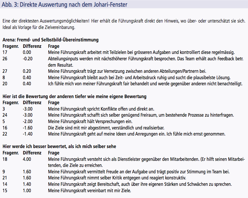 Die Auswertungen der Messergebnisse von HR-aktiv zeigen auf einfache Art Chancen auf. Führungskräfte wie auch Mitarbeitende haben inzwischen gelernt, Eigenverantwortung für die eigene Zufriedenheit zu übernehmen. Nun gehen wir einen Schritt weiter: In gleicher Art und Weise messen wir die Führungsqualität. Im Zentrum steht die Auswertung des Selbst- und Fremdbilds mit dem neuen Tool HR-aktiv-Kompass. Im Mittelpunkt steht die Beantwortung der Frage: «Wie sehe ich mich und wie sehen mich die anderen in meinen Führungsaufgaben?» Dabei wird das «Johari-Fenster» (siehe Kasten) konsequent angewendet.