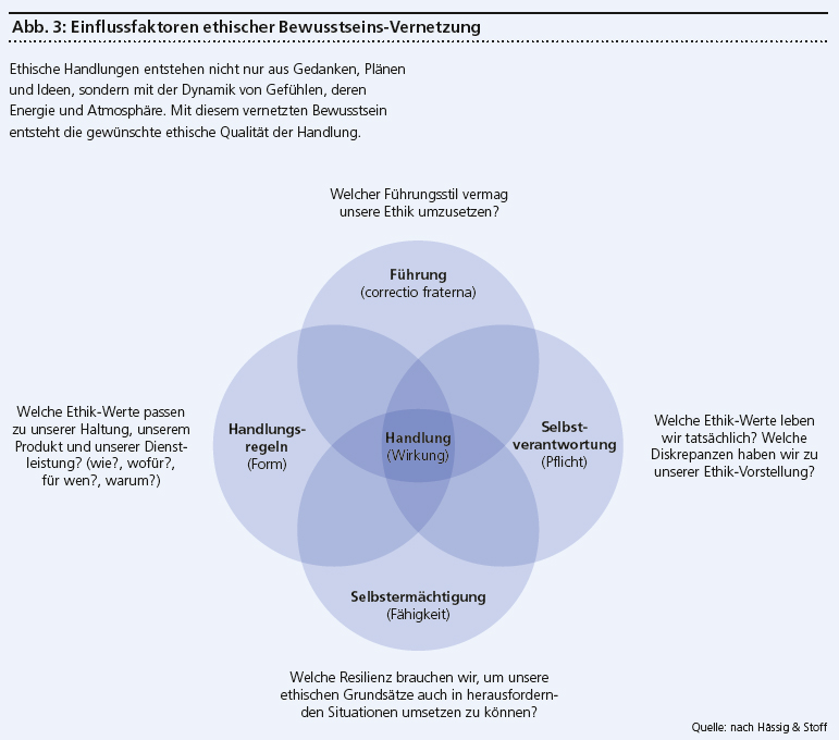 Darüber hinaus soll die Übereinstimmung des unternehmerischen Geschäftsgebarens auch mit allen gesellschaftlichen Richtlinien und Wertvorstellungen, mit Moral und Ethik gewährleistet werden. Ansprüche, die nicht erfüllbar sind. Diese Anwendung des Begriffes Ethik wirkt oberflächlich, weil sie sich nur auf ein grob umschriebenes Handlungsfeld bezieht, das sich mehr auf Gesetzestreue abstützt, als auf menschliche und schöpferische Potenziale hinzuwirken.
