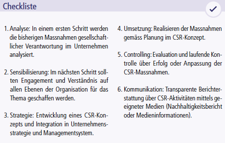 Die Bedürfnisse aller Anspruchsgruppen (Stakeholder) sollen demnach ausgewogen berücksichtigt werden und das Management hat für eine gute Unternehmensführung (Governance) zu sorgen. Zu den Anspruchsgruppen gehören Kundschaft, Mitarbeitende, Kapitalgeber, Konkurrenz, Partner & Lieferanten, aber auch Staat, Öffentlichkeit bzw. Medien sowie gemeinnützige Organisationen. Stefan Grob verspricht: «Die Einbindung aller gemeinnützigen Aktivitäten in die Unternehmensstrategie und damit deren strategische Ausrichtung im Sinne eines CSR-Konzepts schaffen Mehrwert und wirken sich positiv auf das Firmen- und Markenimage aus.» Als Mitglied der Gesellschaft müssen Organisationen die Auswirkungen ihres Handelns möglichst positiv gestalten. Dies trägt zu einer nachhaltigen Entwicklung der Gesellschaft bei.