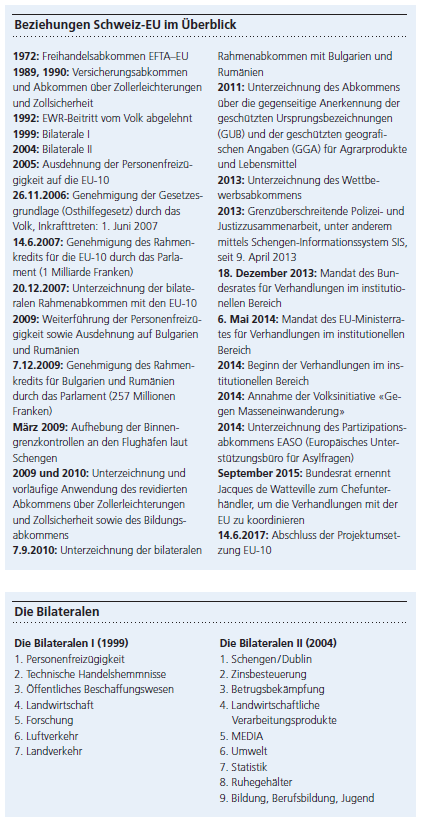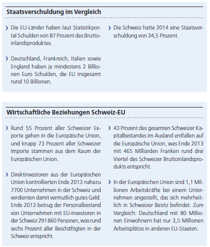 In einem Dokument des Europaparlamentes vom Oktober 2015 mit dem Titel «Der Europäische Wirtschaftsraum (EWR), die Schweiz und der Norden» wird die Beziehung zwischen der Schweiz und der EU beurteilt. Die 120 sektorspezifischen Abkommen hätten zu einer Intensivierung der wirtschaftlichen Beziehungen beigetragen. Gleichzeitig sei ein kom-