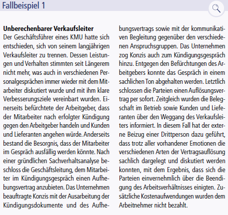 Will man als Arbeitgeber der Mitarbeiterin oder dem Mitarbeiter einen Auflösungsvertrag unterbreiten, muss die Vorbereitung sehr präzise erfolgen – sowohl auf juristischer als auch auf kommunikativer Ebene. Nebenstehend zwei reale Fallbeispiele aus der Beratungspraxis der Autorin.