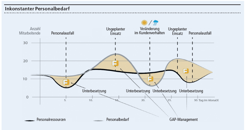 Damit diese flexiblen Arbeitskräfte an unterschiedlichsten Orten Einsätze leisten können, braucht es eine geeignete Vermittlungsplattform. Hier kann die Digitalisierung Hilfestellung bieten. Was mit Amazon, Google und Apple begann, weitet sich immer weiter aus. Unternehmen wie Whatsapp, Tesla, Uber oder Airbnb haben mit einer einzigen cleveren Idee ganze Branchen revoltiert, Wertschöpfungsketten aufgebrochen und Milliardenumsätze generiert. Die Digitalisierung erfolgt branchenübergreifend in rasantem Tempo. Eine sogenannte «Digitale Transformation» findet statt. Dieser Begriff umschreibt die kontinuierliche Veränderung der Unternehmensprozesse und -interaktionen, angestossen durch neue Informations- und Kommunikationstechnologien. Dabei geht es um den Wandel, welcher auf der Vernetzung von Mensch und Maschine basiert. Dieser Wandel führt dazu, dass sich Geschäftsmodelle weg vom Produkt zunehmend in Richtung Dienstleistung, mit eventuell eingebautem Produkt, entwickeln. Aufgrund der Digitalisierung verändert sich die Art und Weise, wie Unternehmen mit ihren Stakeholdern interagieren. Die kluge Auswertung von Daten bietet die Grundlage für neue Modelle, welche Produkte, Dienstleistungen, Preise und Vertriebstätigkeiten gestalten. Wer sich diese Datenanalysen geschickt zunutze macht, kann die Kosten reduzieren und die Effizienz steigern. So auch im Personalwesen: Heute können Unternehmen innert vier Stunden, oder sogar weniger, Arbeitskräfte finden. Algorithmen ermöglichen eine schnelle und kurzfristige Personalvermittlung. Auf Plattformen findet der Arbeitgeber per Mausklick jederzeit Arbeitskräfte. Dabei kann auf diverse Variablen, wie Ort und Dauer des Auftrages, eingegangen werden. Die Vermittlung findet via Mobile-Applikation und Push-Mitteilungen in Echtzeit statt. Die Transaktionskosten sind bei dieser sogenannten «Just-in-time»-Personalplanung tief und es ist jederzeit ein grosser Pool an Arbeitskräften verfügbar. Dank gegenseitiger Bewertung von Arbeitgeber und Arbeitnehmer wird zudem die Qualität sichergestellt.