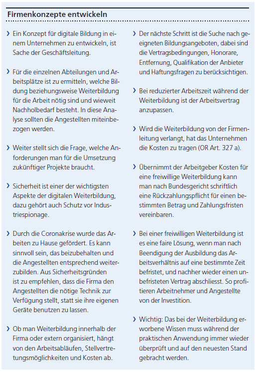 Viele Organisationen der Arbeitswelt, Bildungsinstitutionen, Anbieter überbetrieblicher Kurse, kantonale Bildungsverwaltungen sowie Berufs-, Studien- und Laufbahnberatungen befassen sich bereits aktiv mit dem Thema Digitalisierung, siehe Kastentext.