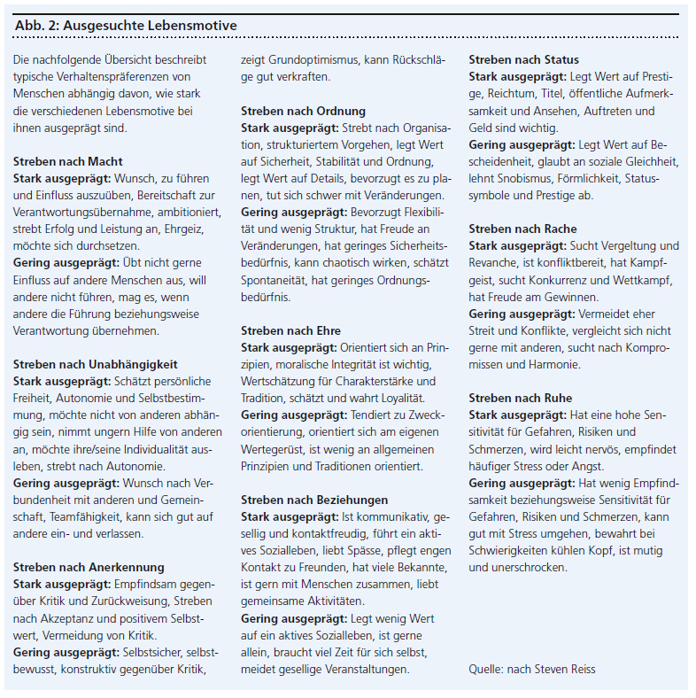 Eine Führungskraft muss überzeugt sein: Ich kann in meiner Funktion etwas Positives bewirken. Denn nur dann strahlt sie das nötige Selbstbewusstsein und -vertrauen aus. Suchen Sie Ihre Antwort auf die Frage: «Warum bin ich hier – in diesem Unternehmen, in dieser Position – genau der/die Richtige?»